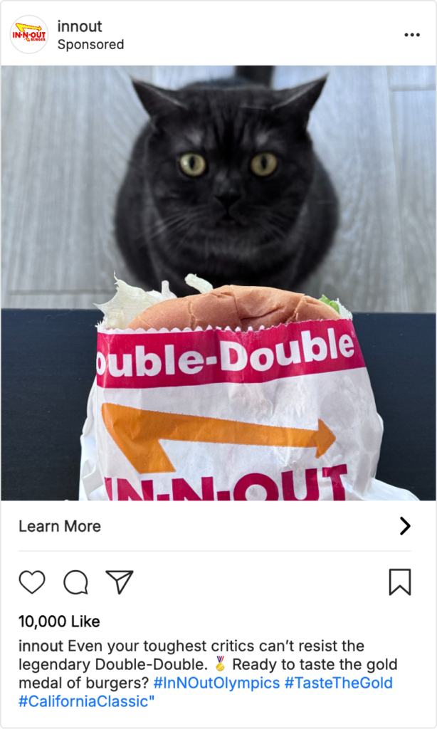 And for visitors from around the world, there’s no better way to experience California than with In-N-Out. A bite of our Double-Double is like a taste of the West Coast, and for the 2028 Olympics, we’re ready to serve it up with pride.