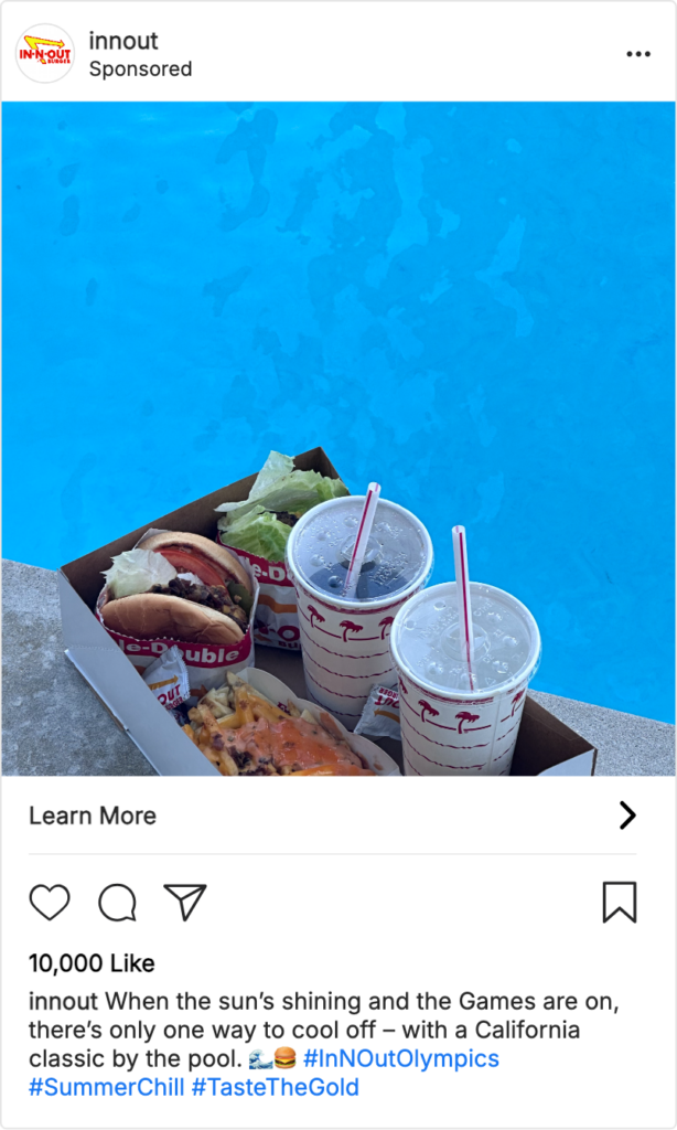 At In-N-Out, we’re more than just a meal – we’re an essential part of the California lifestyle. The same dedication that goes into making each Olympic champion is reflected in every burger, fry, and shake we serve. From our hand-leafed lettuce to our fresh, never-frozen beef patties, our ingredients are always top-tier – just like the athletes on the Olympic stage.